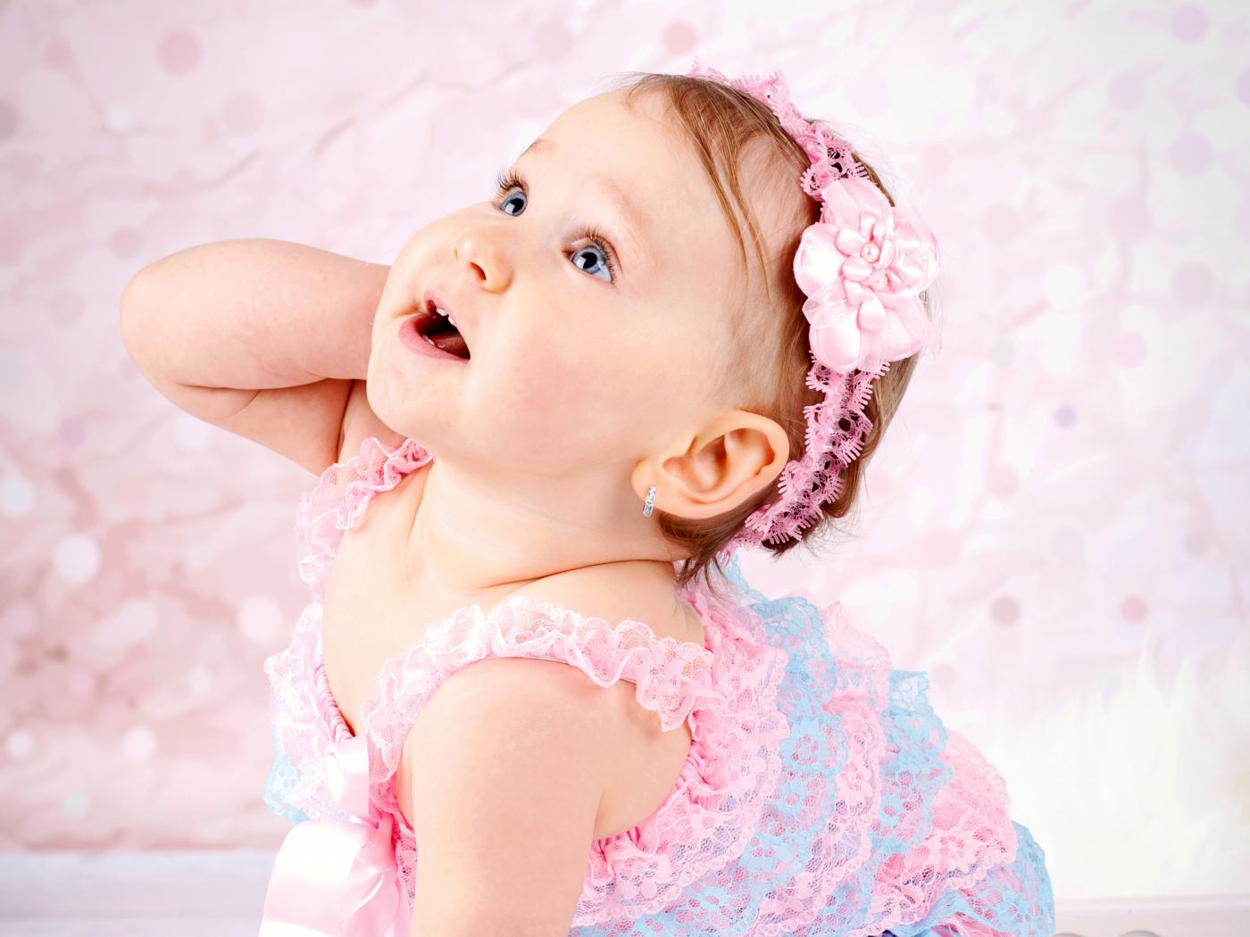 Wallpaper Interested look of a little girl in a beautiful dress