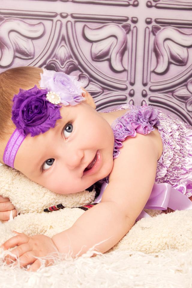 Wallpaper Beautiful little girl in purple suit with teddy bear