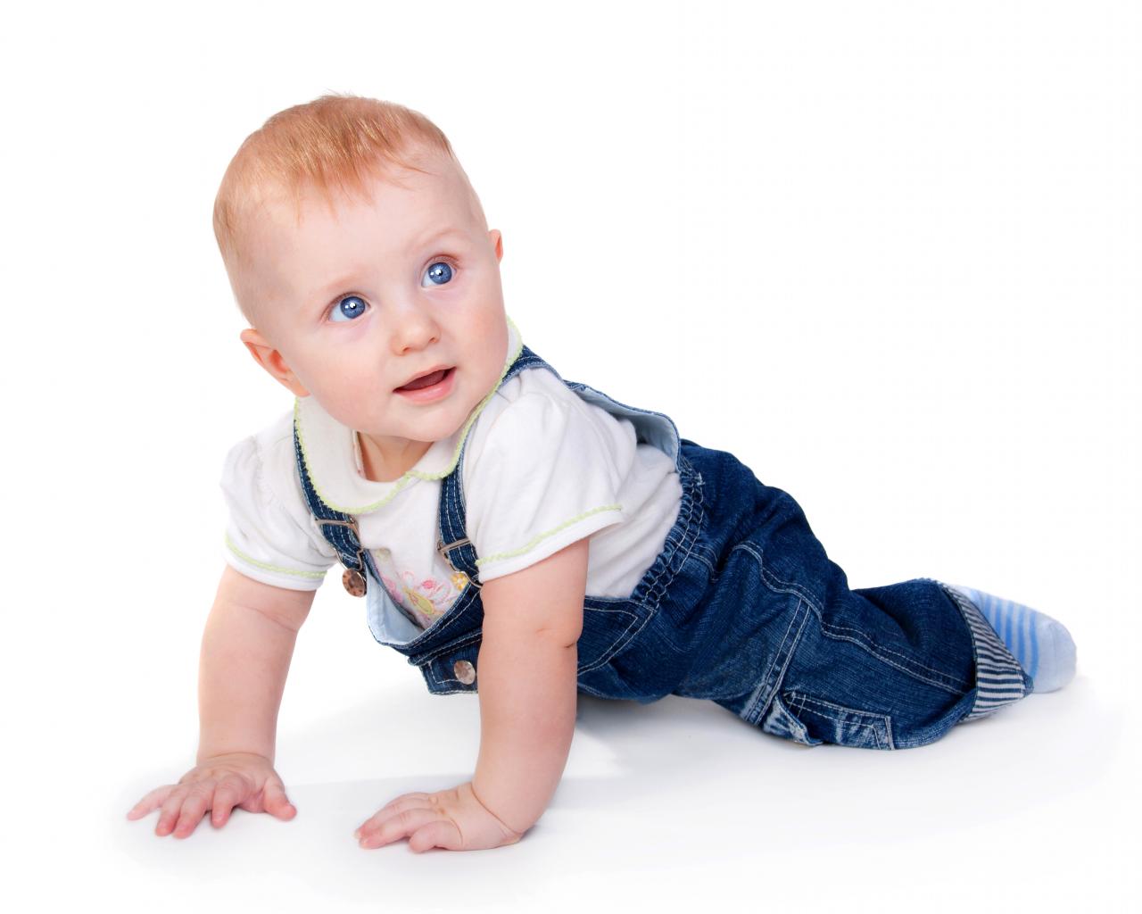 Wallpaper Blue-eyed baby with a white hat and ears on a white background