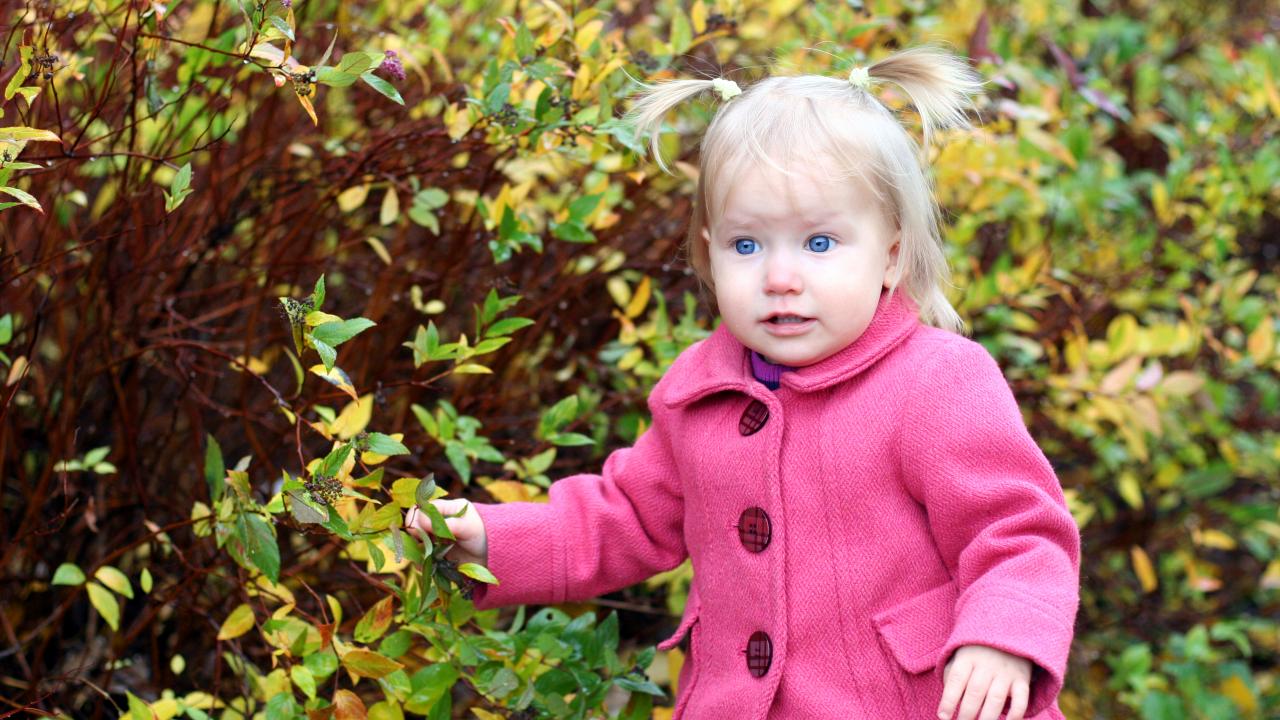 Wallpaper Little blue-eyed girl in a pink coat