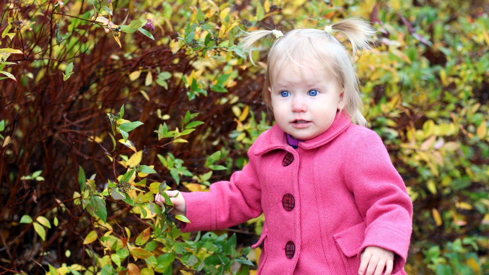 Wallpaper Little blue-eyed girl in a pink coat