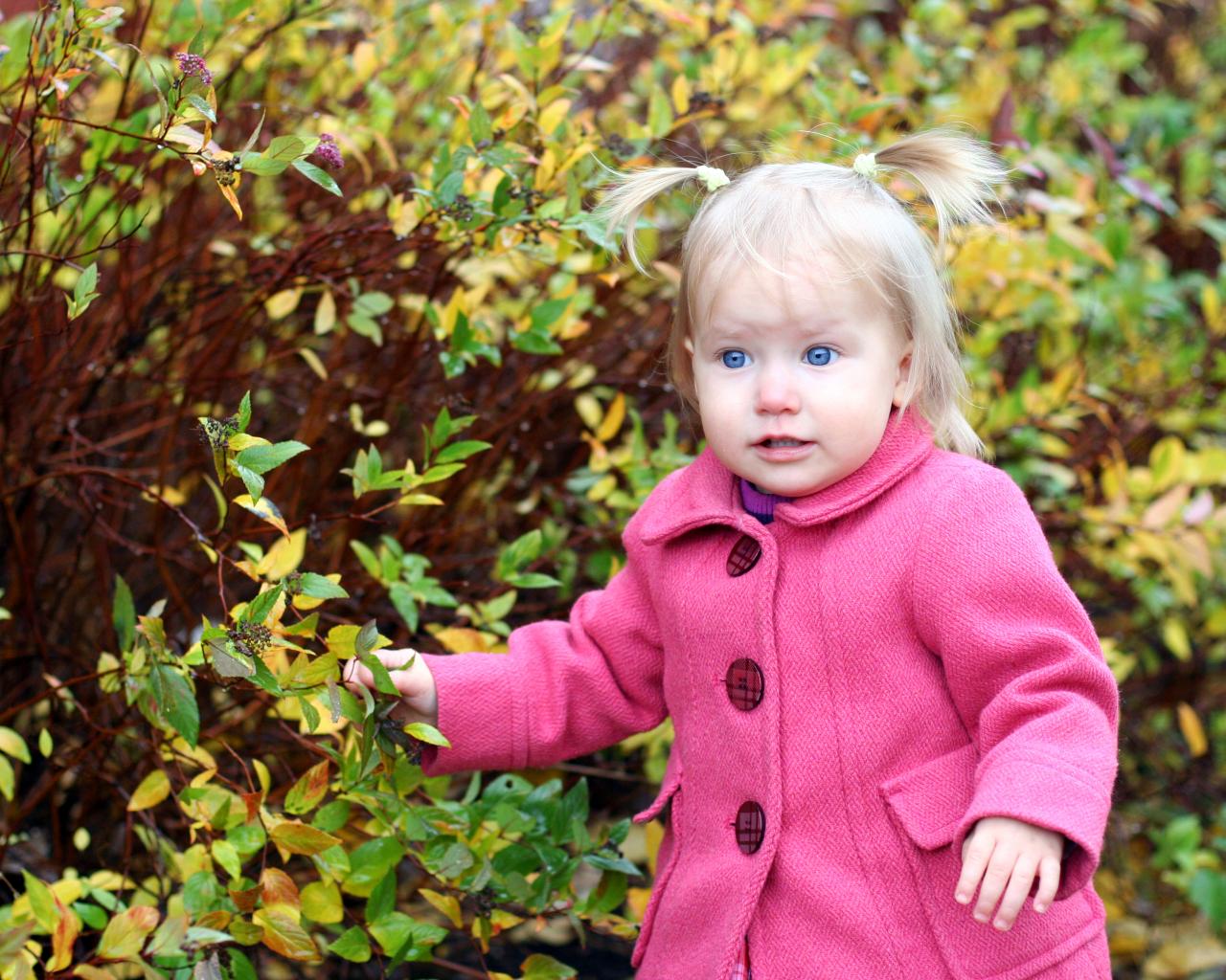 Wallpaper Little blue-eyed girl in a pink coat