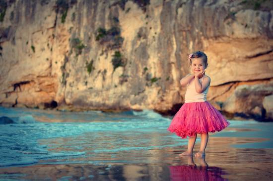Wallpaper Little girl in a beautiful pink skirt on the beach