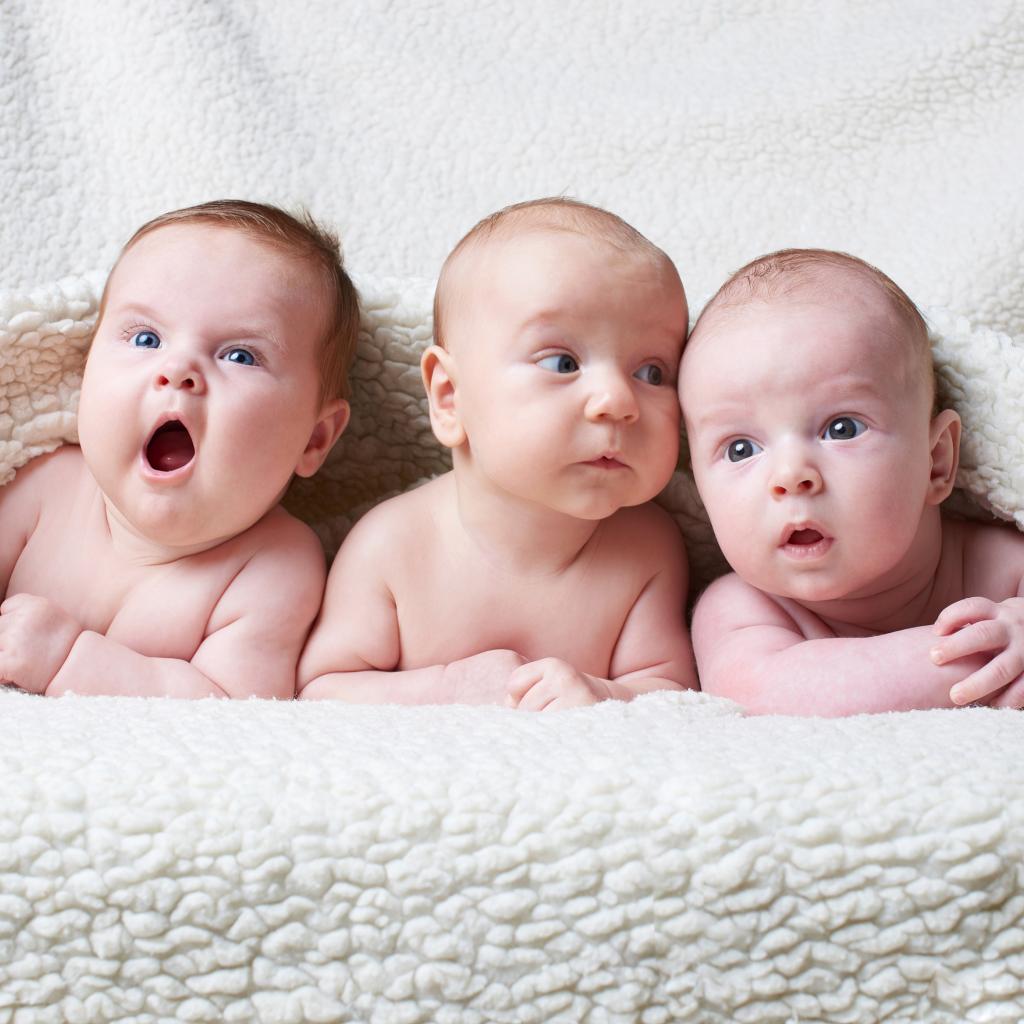Wallpaper Three babies under a white warm blanket