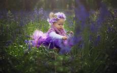 Wallpaper Sad girl in a beautiful dress sits on the grass with a bicycle