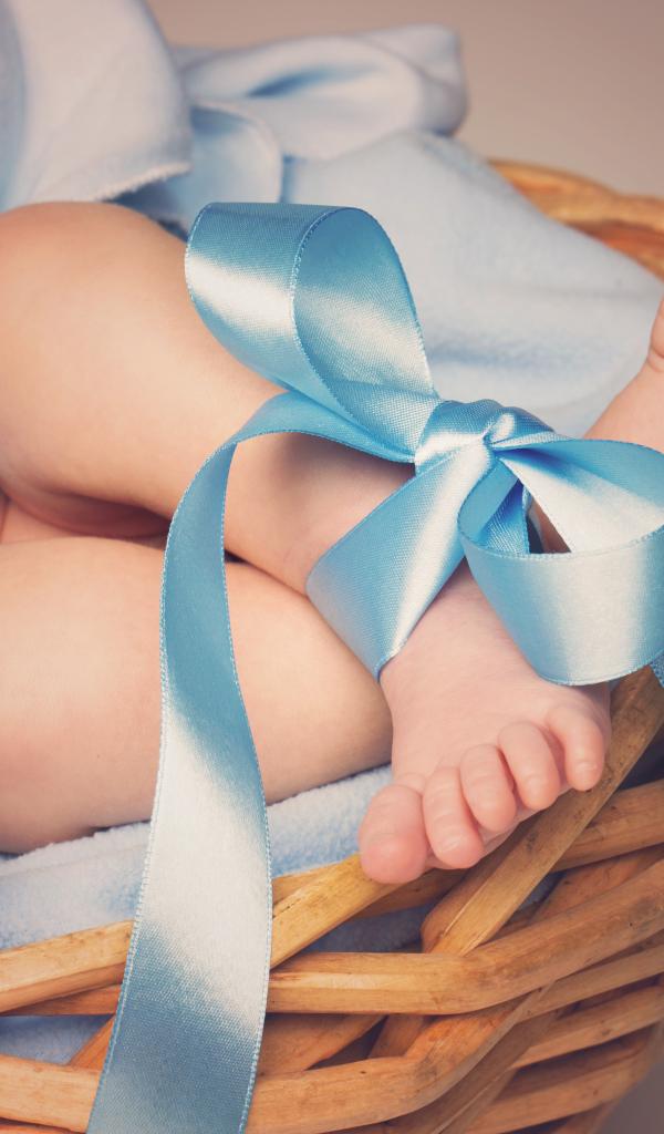 Wallpaper Little baby legs with a blue bow