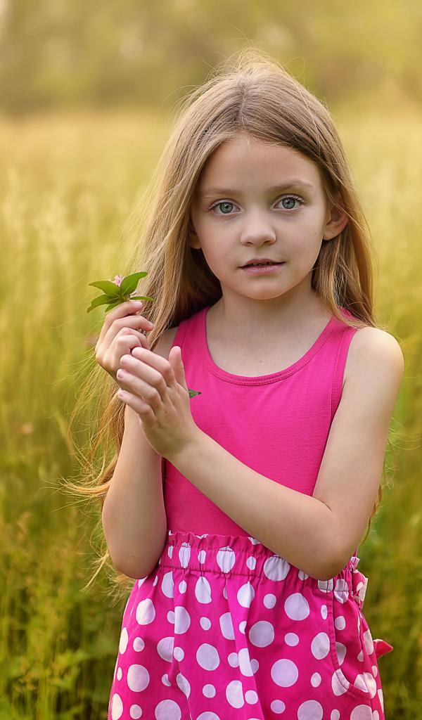 Wallpaper Little long-haired girl in a pink sarafan on the field