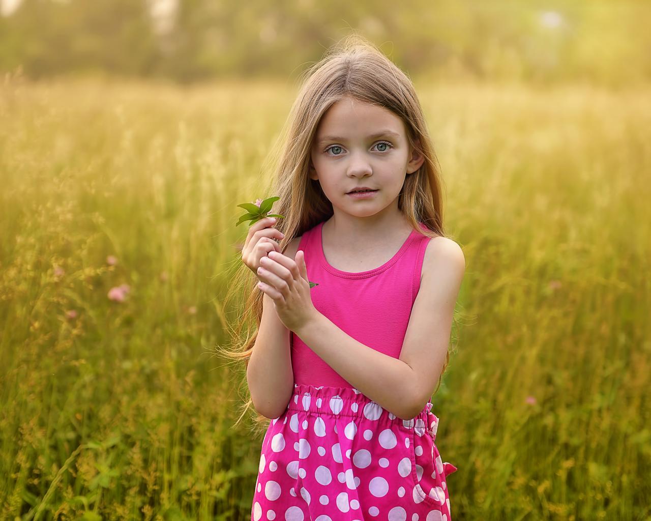 Wallpaper Little long-haired girl in a pink sarafan on the field