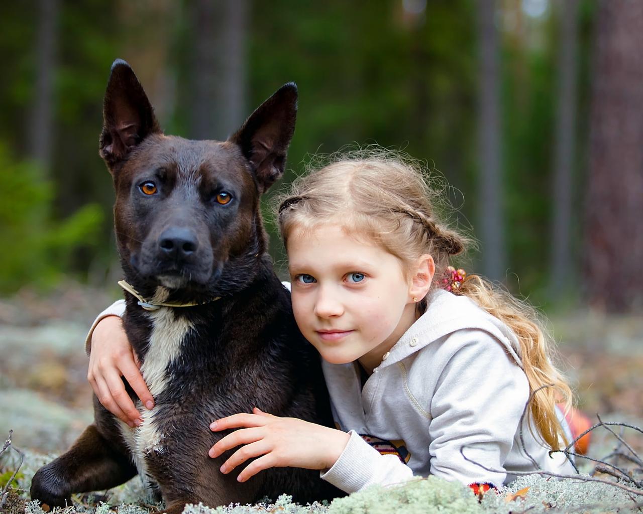 Wallpaper Nice blue-eyed girl with a big black dog