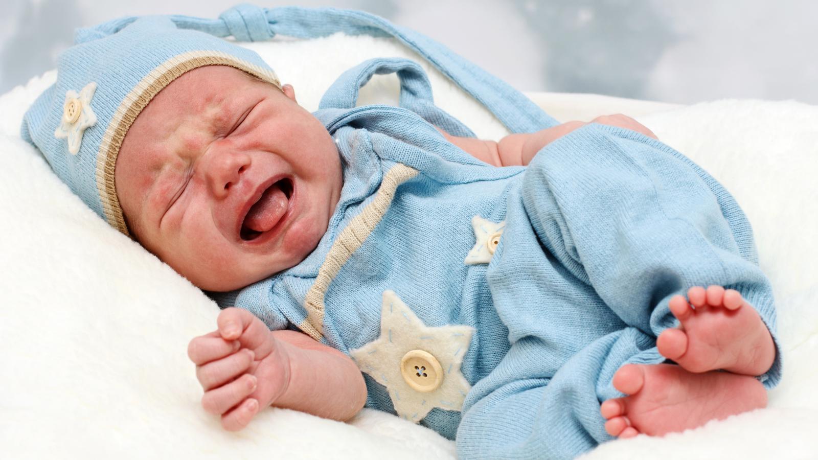 Wallpaper Funny sleeping baby in a blue knitted suit