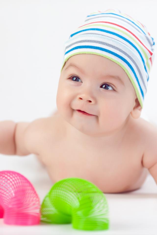 » Wallpaper Smiling baby with toys rainbow