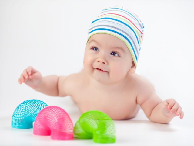 Wallpaper A baby with colorful toys