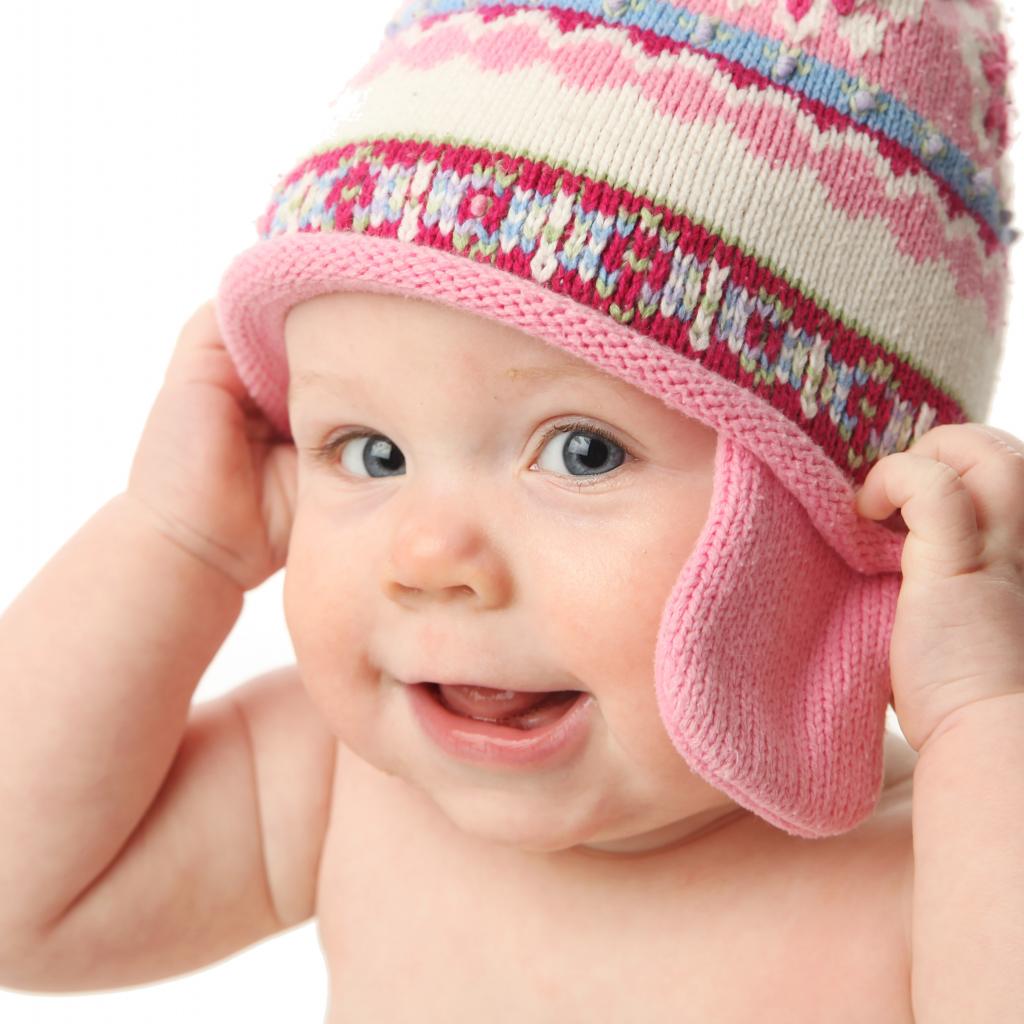 Wallpaper Smiling child in hat on white background