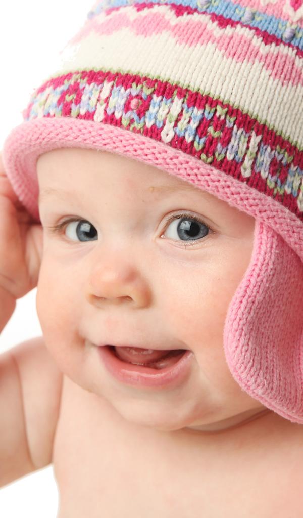 Wallpaper Smiling child in hat on white background