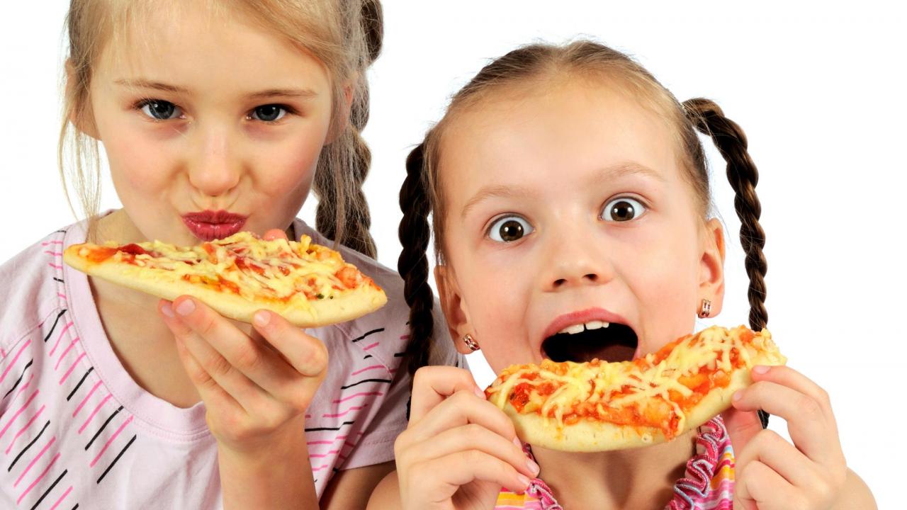 Wallpaper Two little girls with pizza