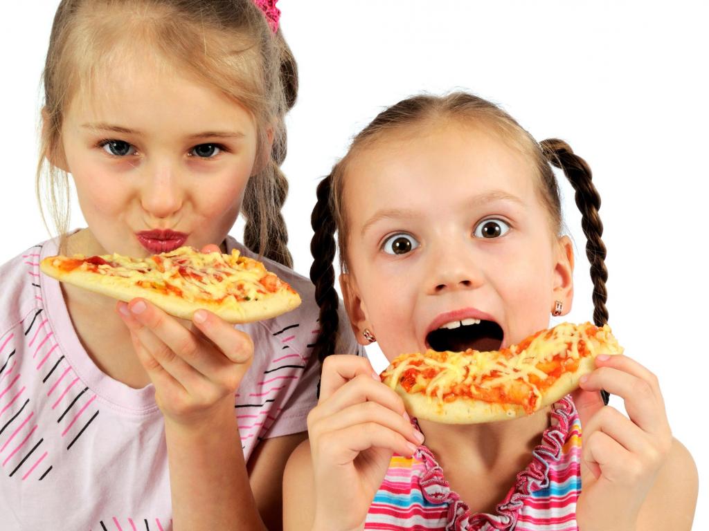 Wallpaper Two little girls with pizza