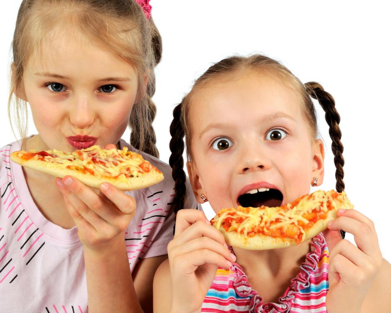 Wallpaper Two little girls with pizza