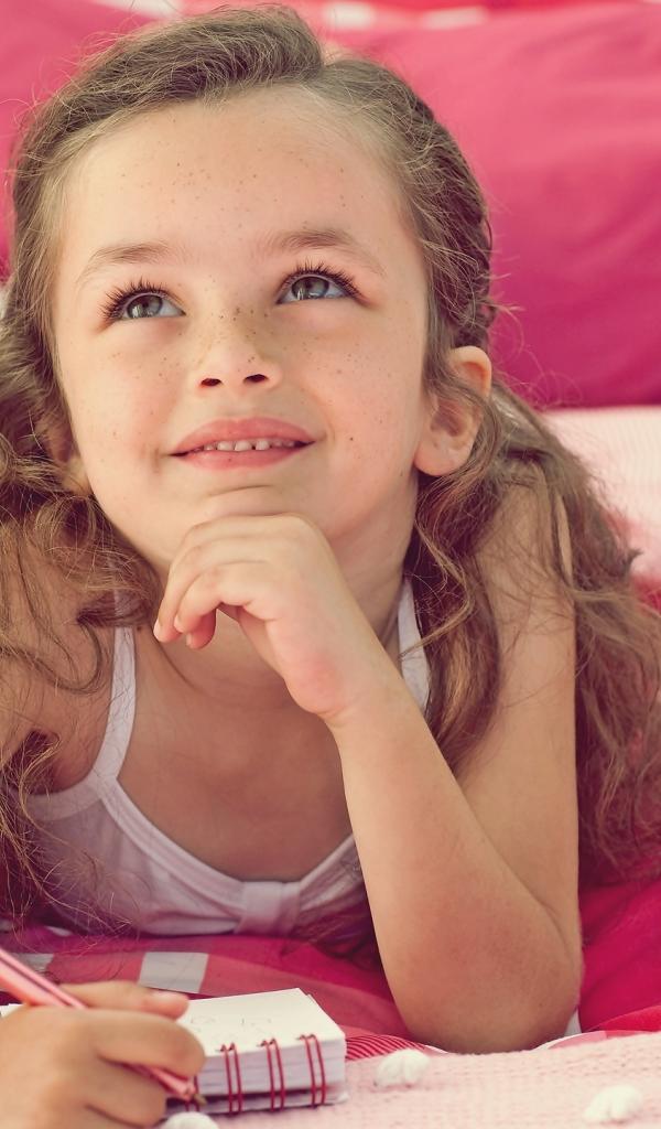 Wallpaper A dreamy little girl lies on a bed