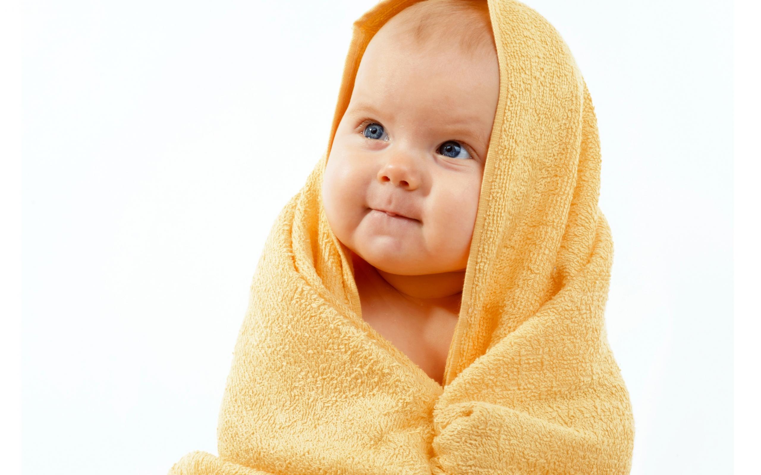 Wallpaper Thoracic baby in a yellow towel on a white background