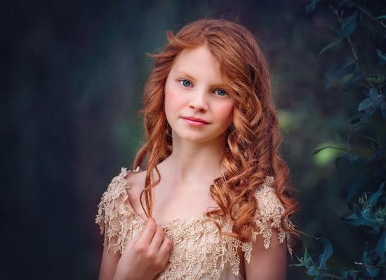 Wallpaper Little blue-eyed red-haired girl in a beautiful dress