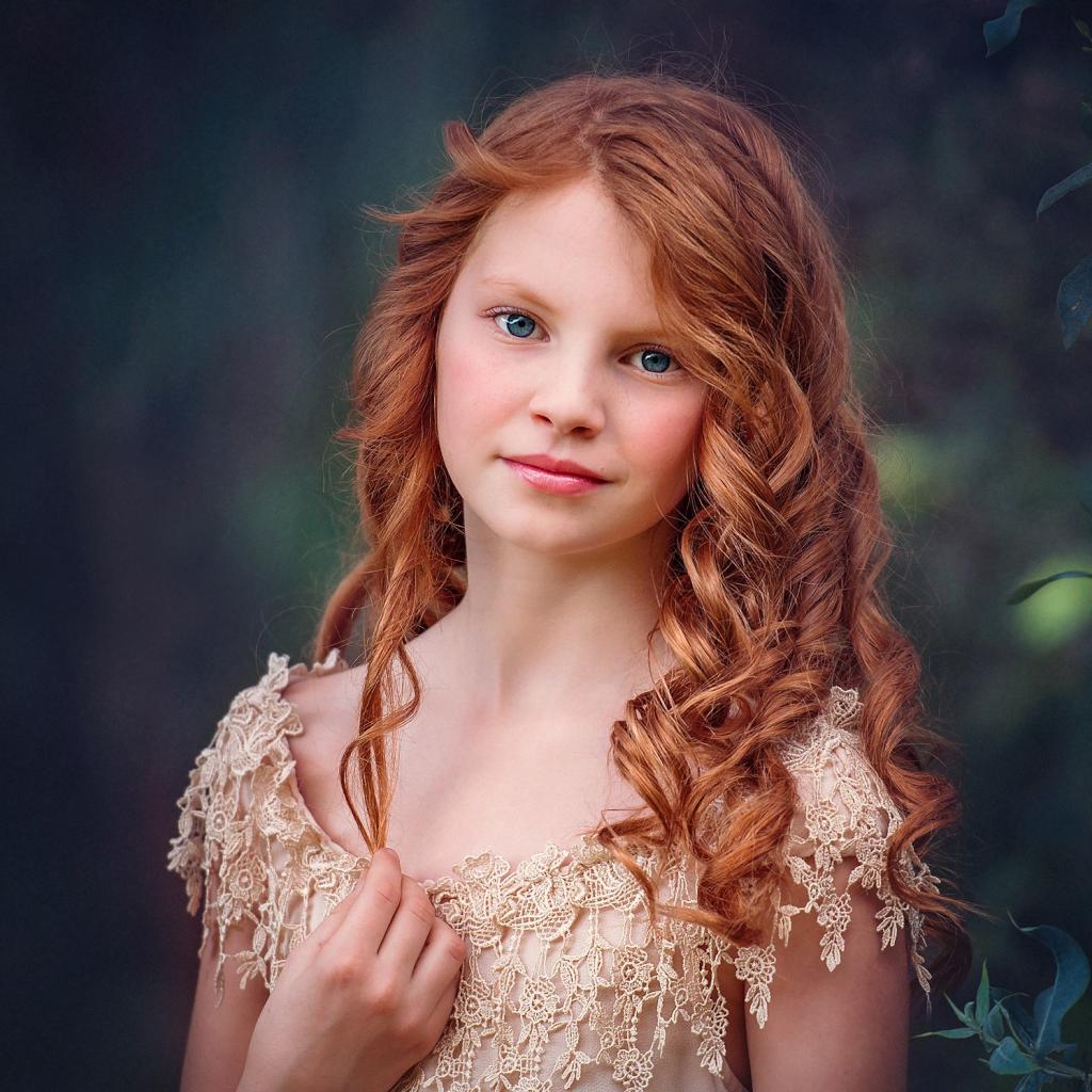 Wallpaper Little blue-eyed red-haired girl in a beautiful dress
