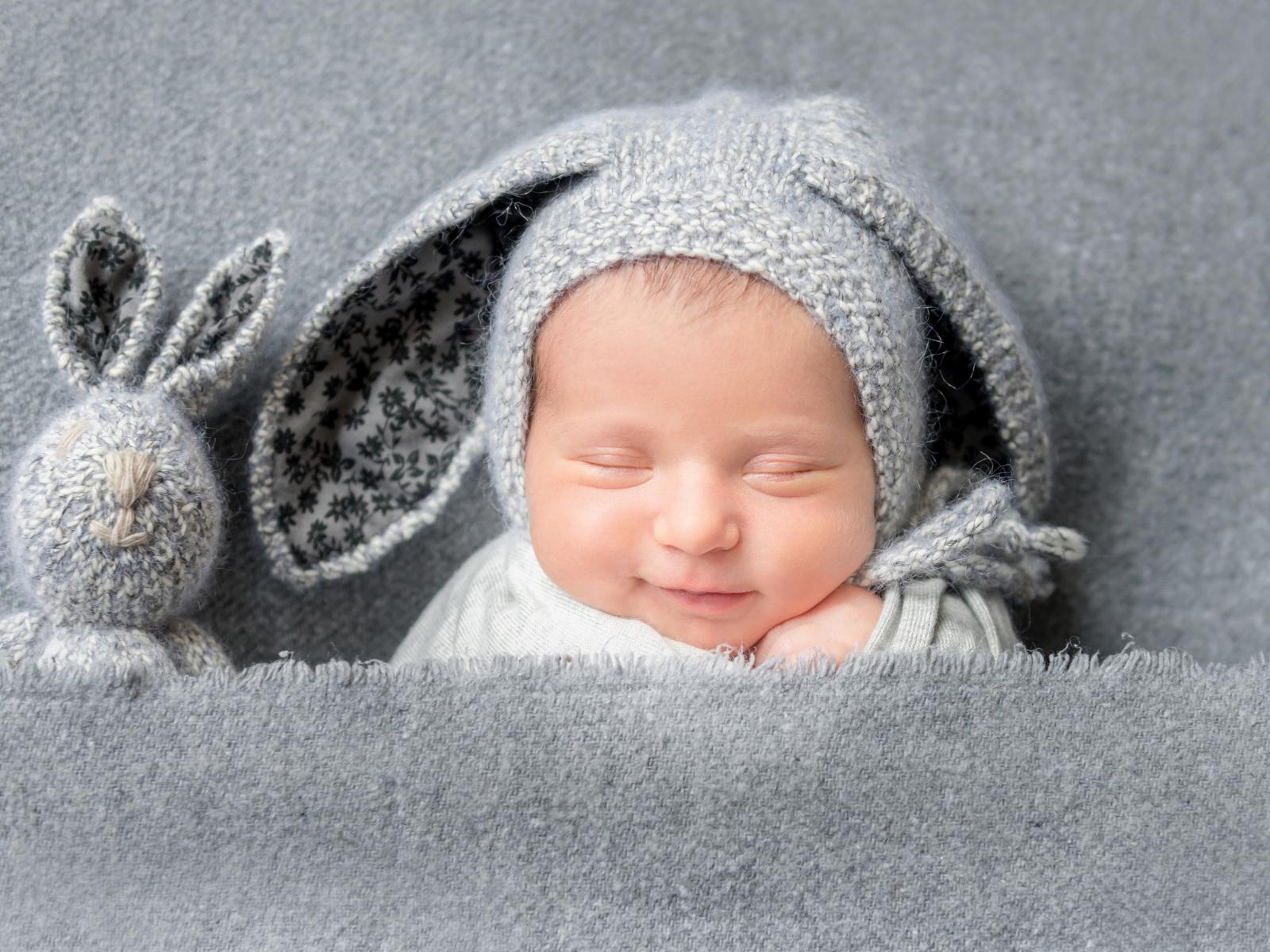 Wallpaper A small baby in a gray hat with ears