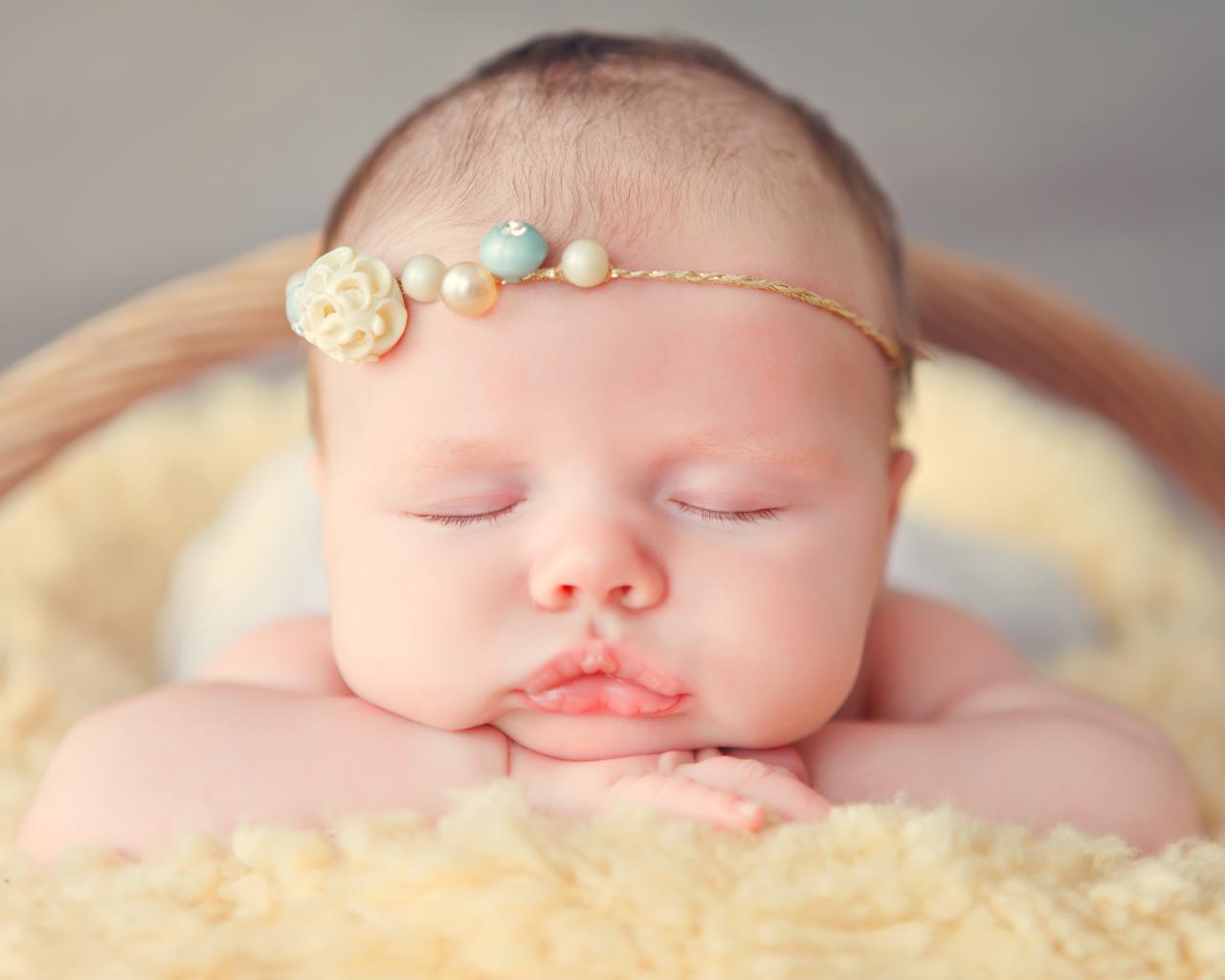 Wallpaper Sleeping baby girl with a beautiful decoration on her head
