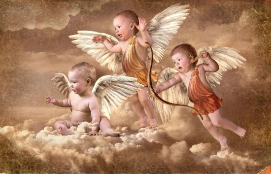 Wallpaper Three little children in a suit of cupids