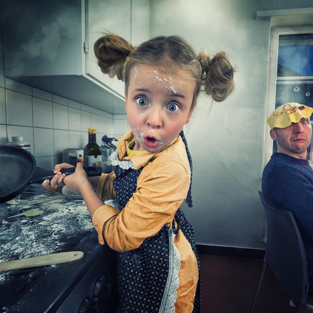 » Wallpaper Funny little girl cooks pancakes