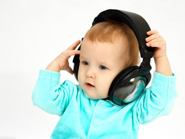 Wallpaper Blue-eyed boy in big headphones on a white background