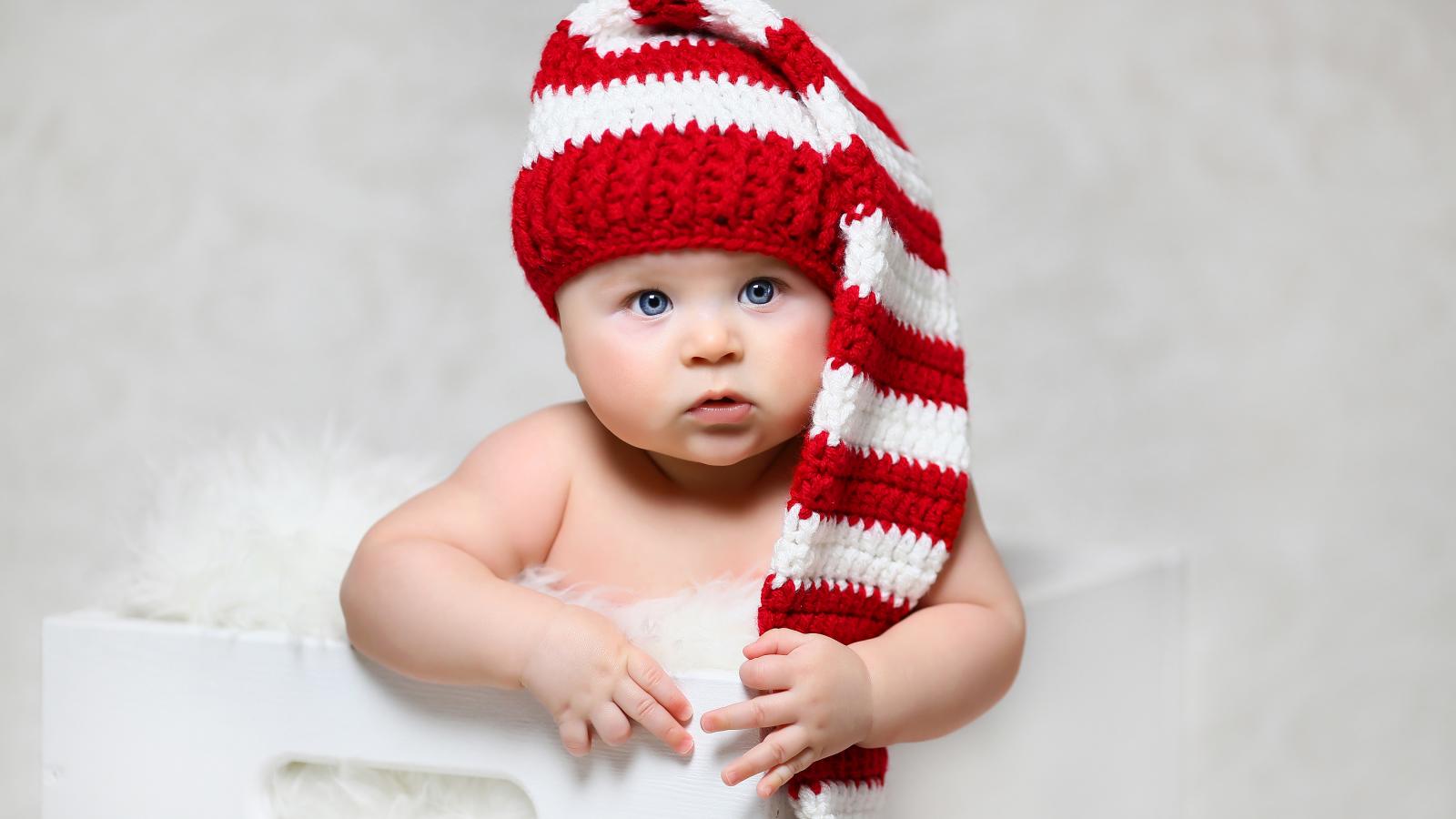 Wallpaper Blue-eyed baby in a long knitted hat