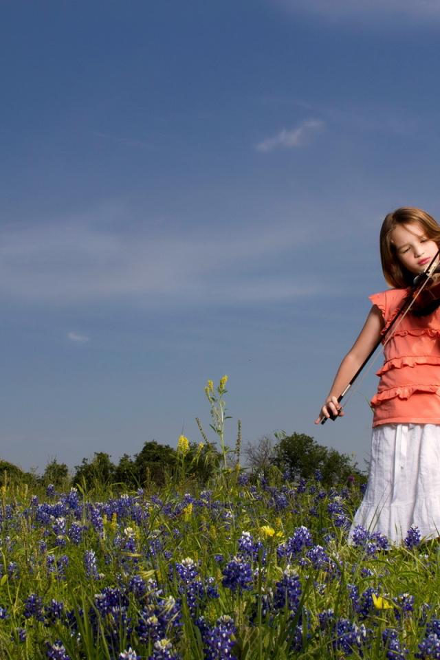 Wallpaper Girl playing the violin on the field with flowers