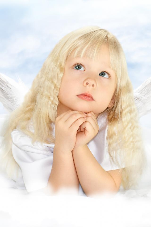 Wallpaper Beautiful little girl in a white dress with angel wings