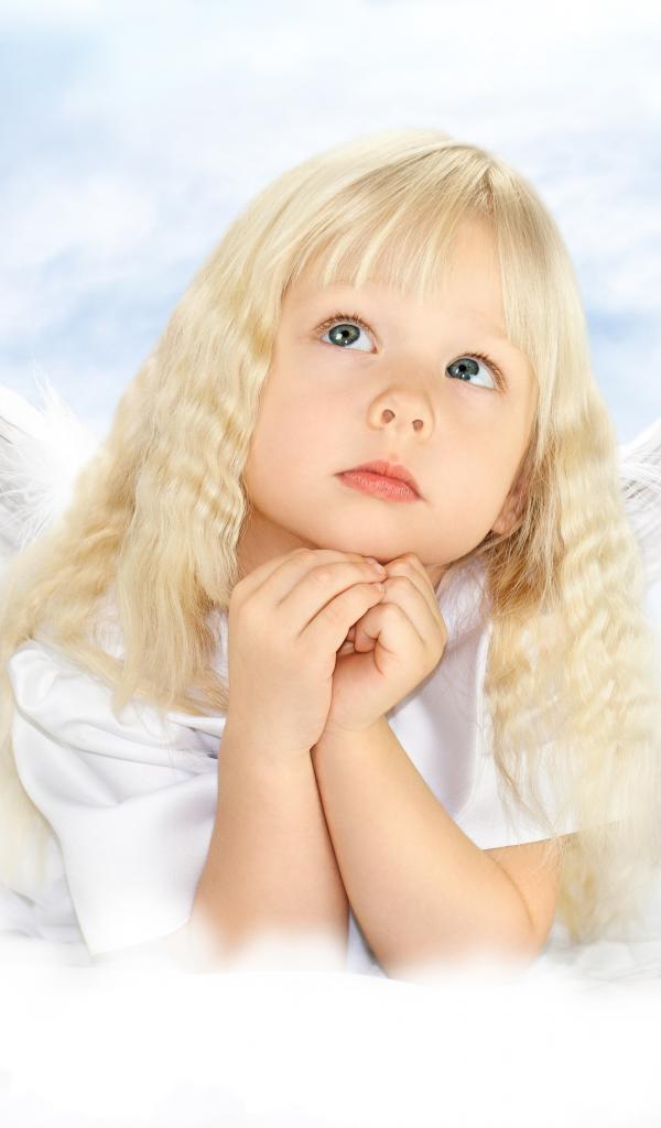 Wallpaper Little blonde girl with angel wings