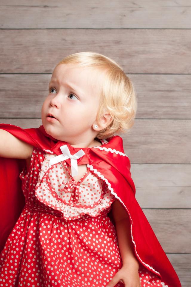 Wallpaper Little girl in a red dress is catching a soap bubble