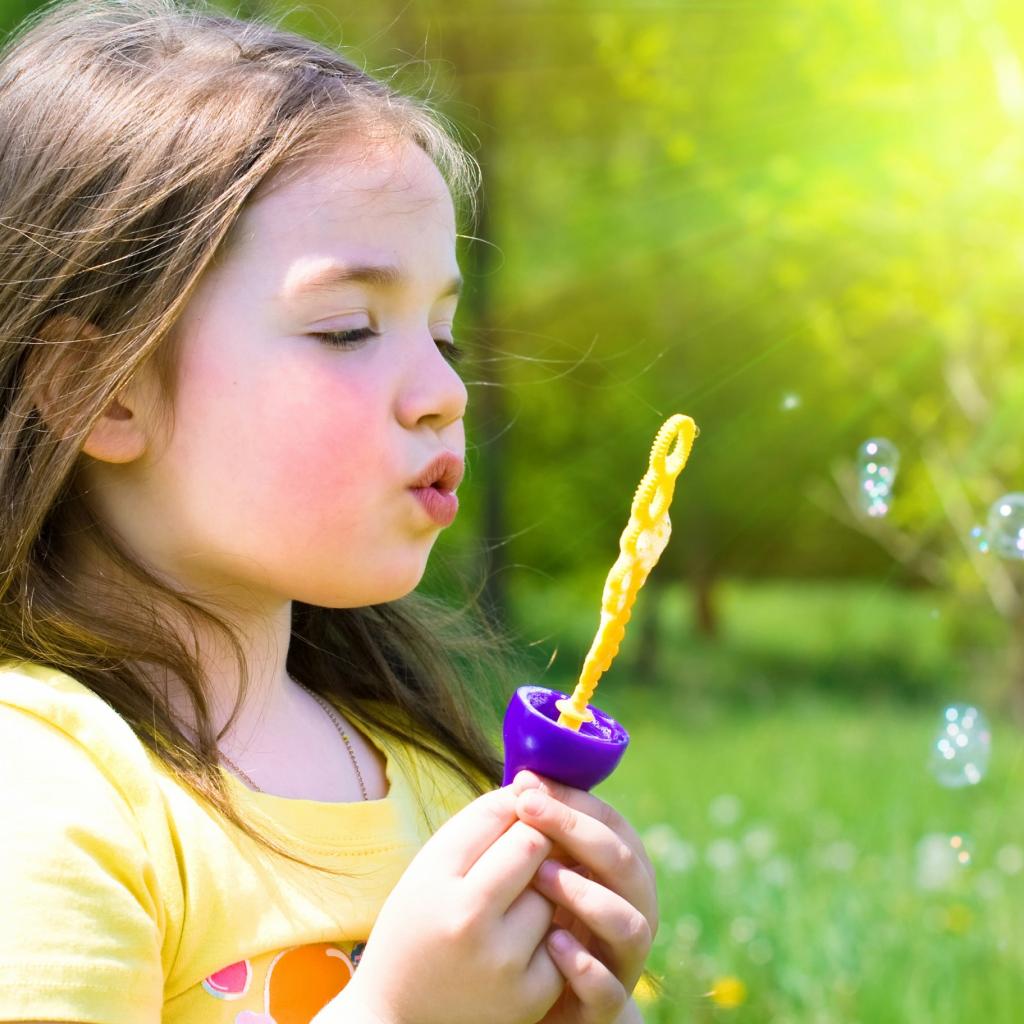 Wallpaper Little girl blows soap bubbles