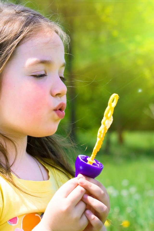 Wallpaper Little girl blows soap bubbles