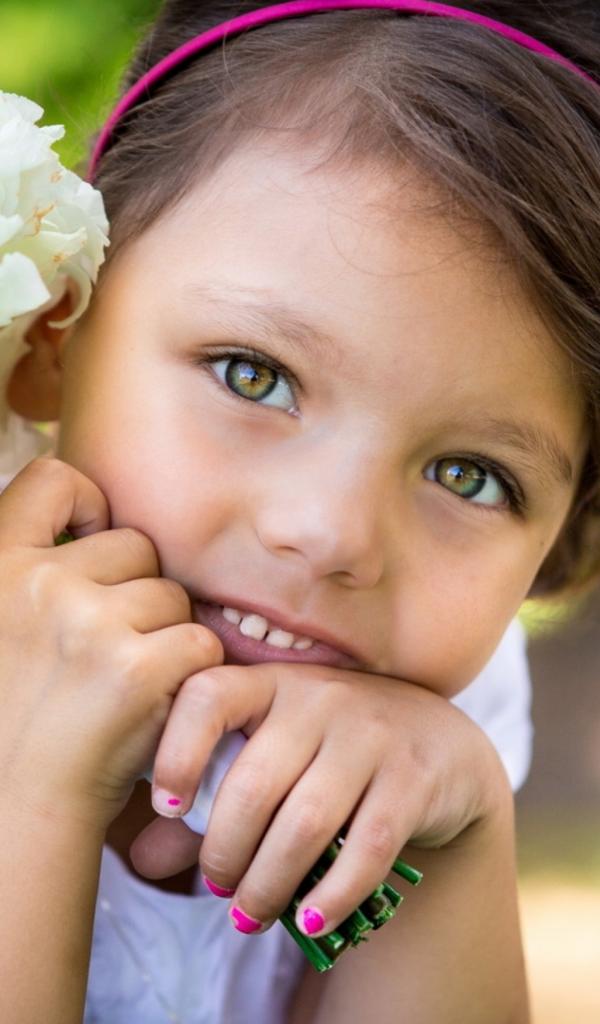 Wallpaper Little girl with a bouquet of white flowers in hands