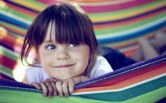 Wallpaper A small brown-eyed girl lies in a hammock
