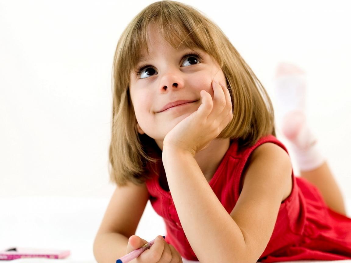 Wallpaper A cute little girl in a red dress draws
