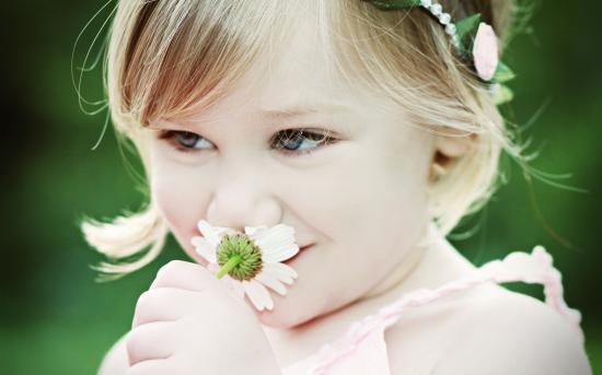 Wallpaper Lovely girl with beautiful eyes with chamomile