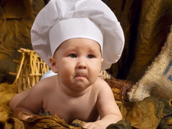 Wallpaper A baby child in a chef`s hat sits in a large saucepan
