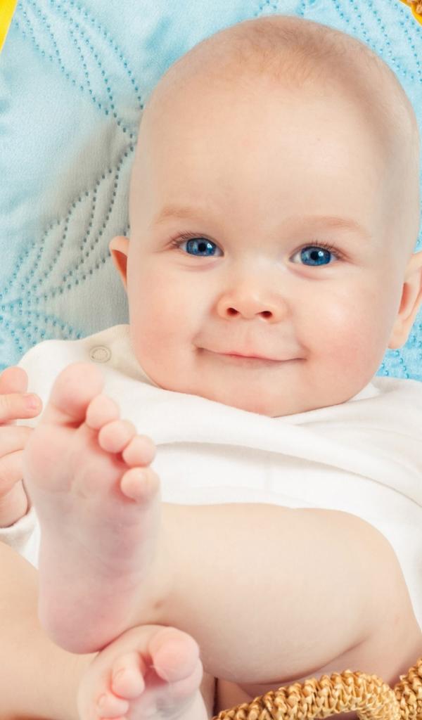 Wallpaper Cute blue-eyed baby on the bed