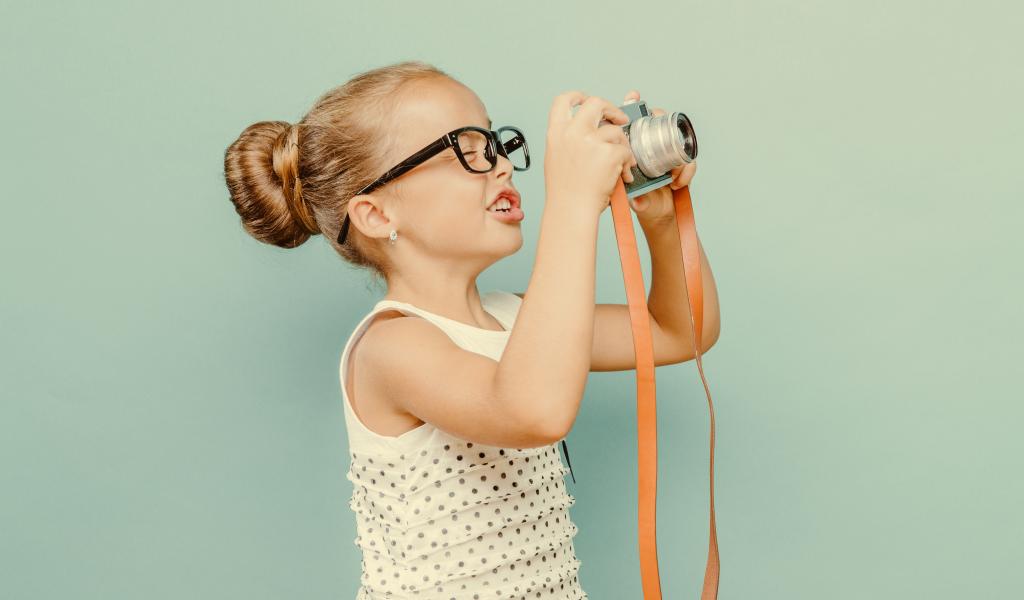 Wallpaper Little girl with glasses with camera