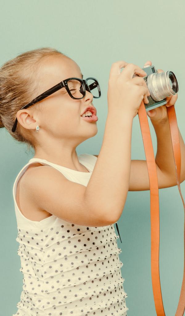 Wallpaper Little girl with glasses with camera