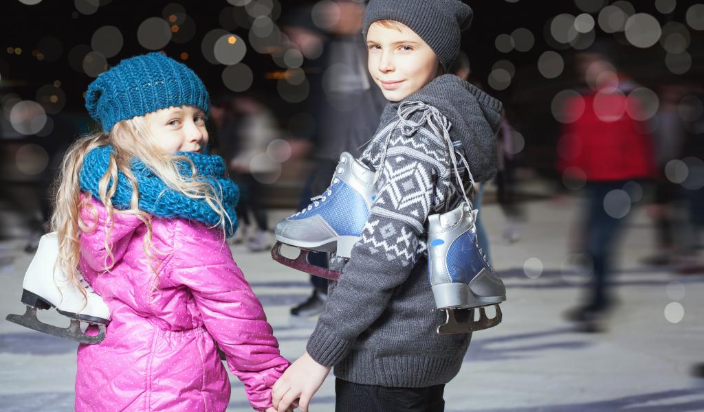 Wallpaper Little boy and girl on the rink