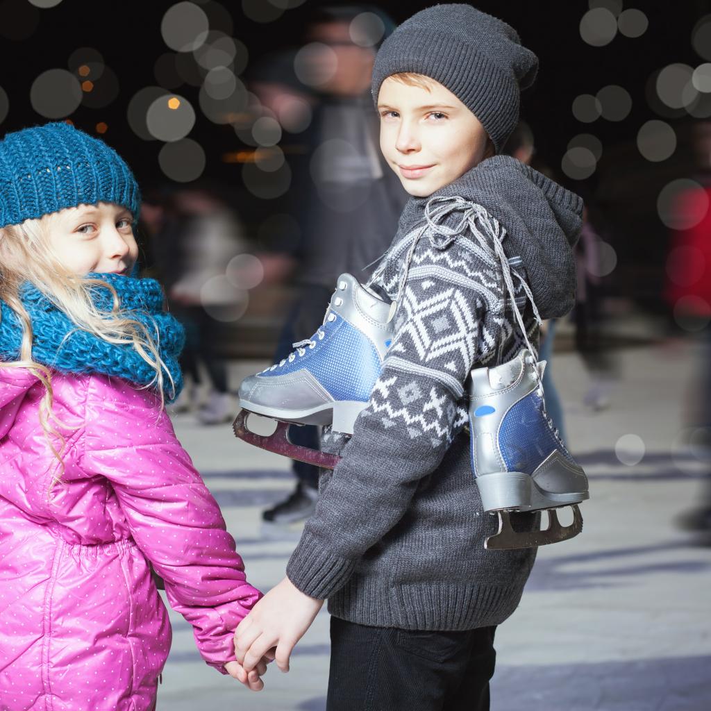 Wallpaper Little boy and girl on the rink