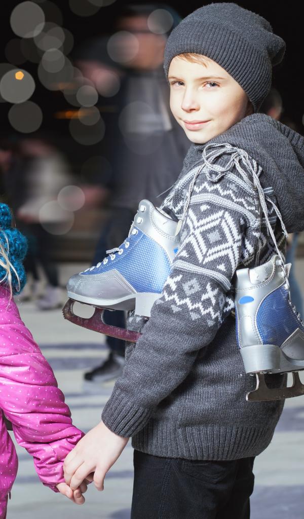 Wallpaper Little boy and girl on the rink