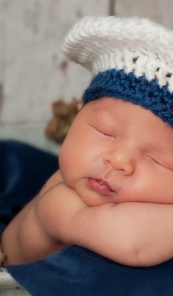 Wallpaper A sleeping baby in a knitted cap with a red bow