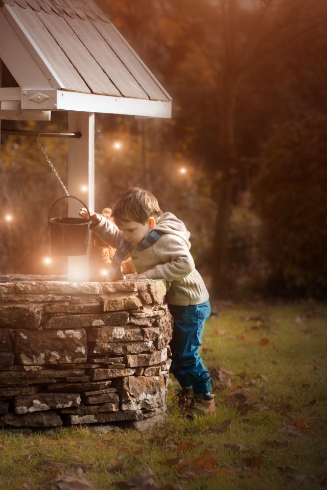 Wallpaper Little boy at the well